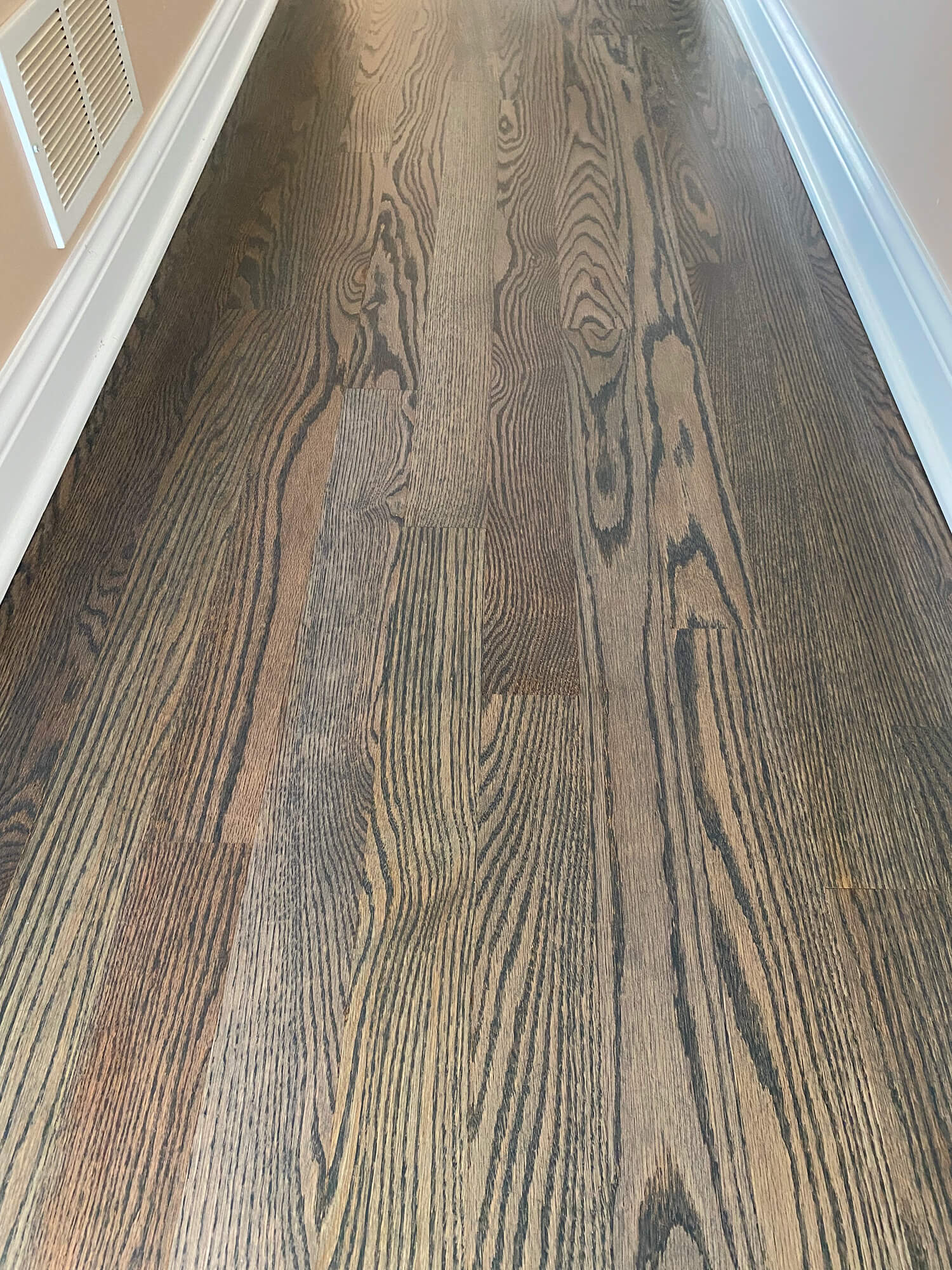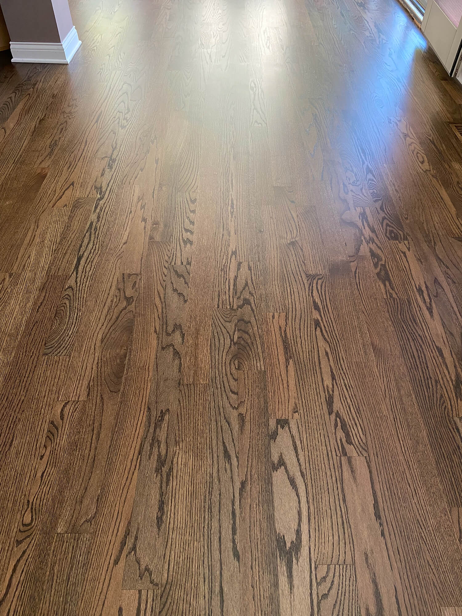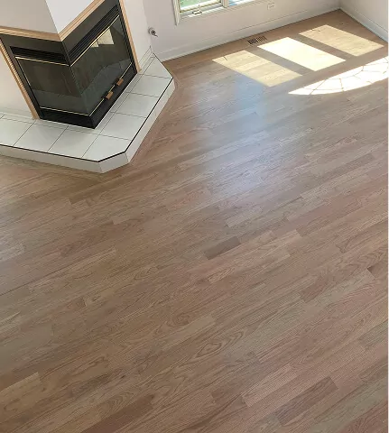 When a repair touches the surface, we use controlled sanding and finish blending so the repaired section looks consistent with the surrounding hardwood floors. Our goal is always the same: a repair that reads as part of the floor, not a new patch. We’ll set clear expectations on what we can match, especially when older finishes have aged differently across rooms.